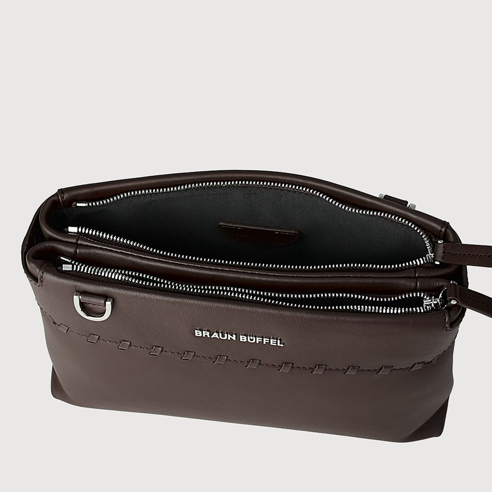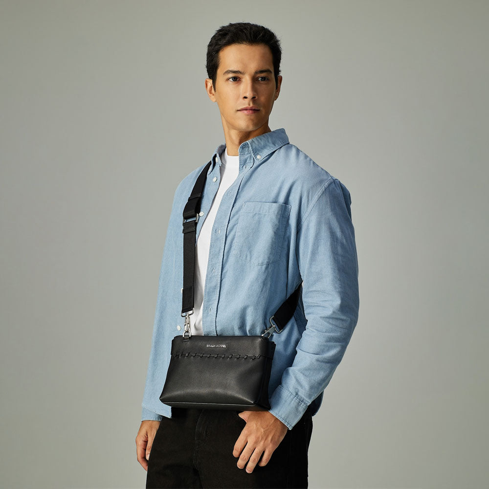 With stitchwork that spans the body, Duo brings focus to detail and construction. Designed with two main zip compartments, it delivers practical organisation in a silhouette that remains clean, structured, and fluid.