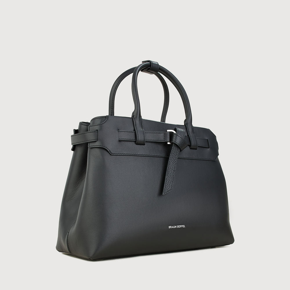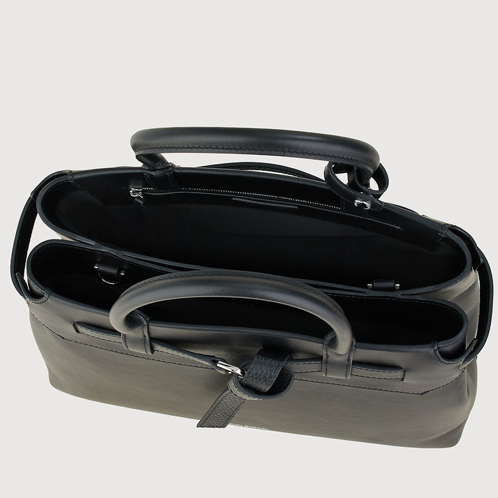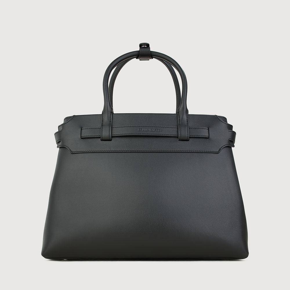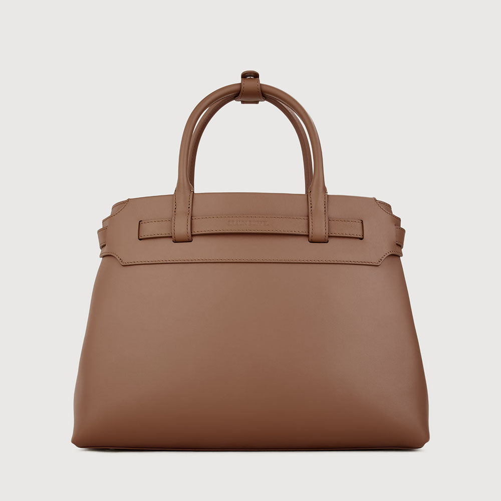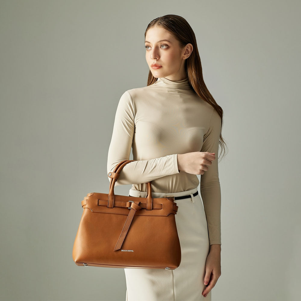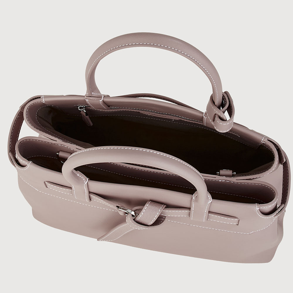 Bindan puts the spotlight on its signature belt knot at the front—a subtle yet striking detail that embodies the idea of connection and elevates the design beyond a simple tote. A removable belt weaves through the top leather panel of the softly structured silhouette, crafted in a mix of pebble and soft gelato leather, combining casual elegance with a minimal, modern finish.