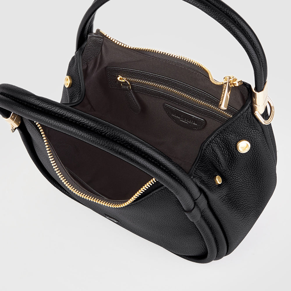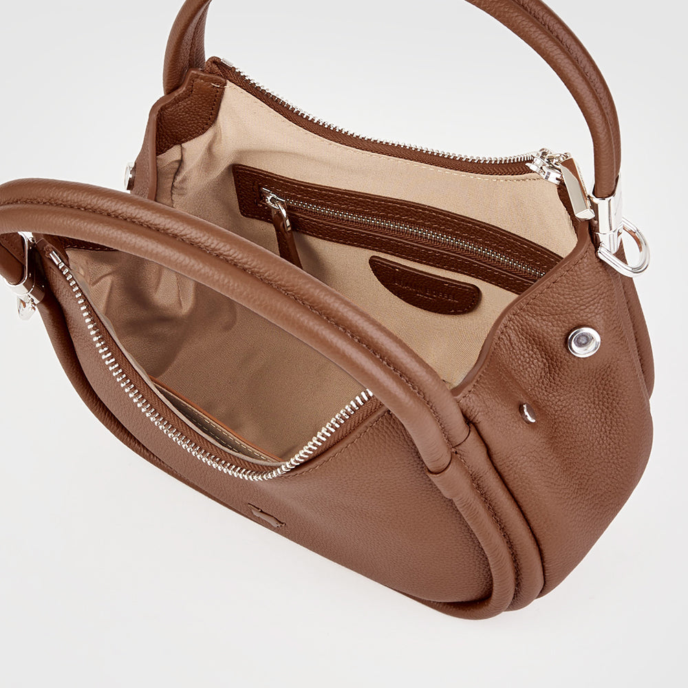 A sophisticated reinterpretation of the classic hobo, the Bow collection boasts a distinctive hobo silhouette, with a convex base that elegantly curves outward. The bag’s graceful structure is complemented by thick, luxurious hobo handles, while the adjustable leather strap offers versatile carrying options for effortless elegance.